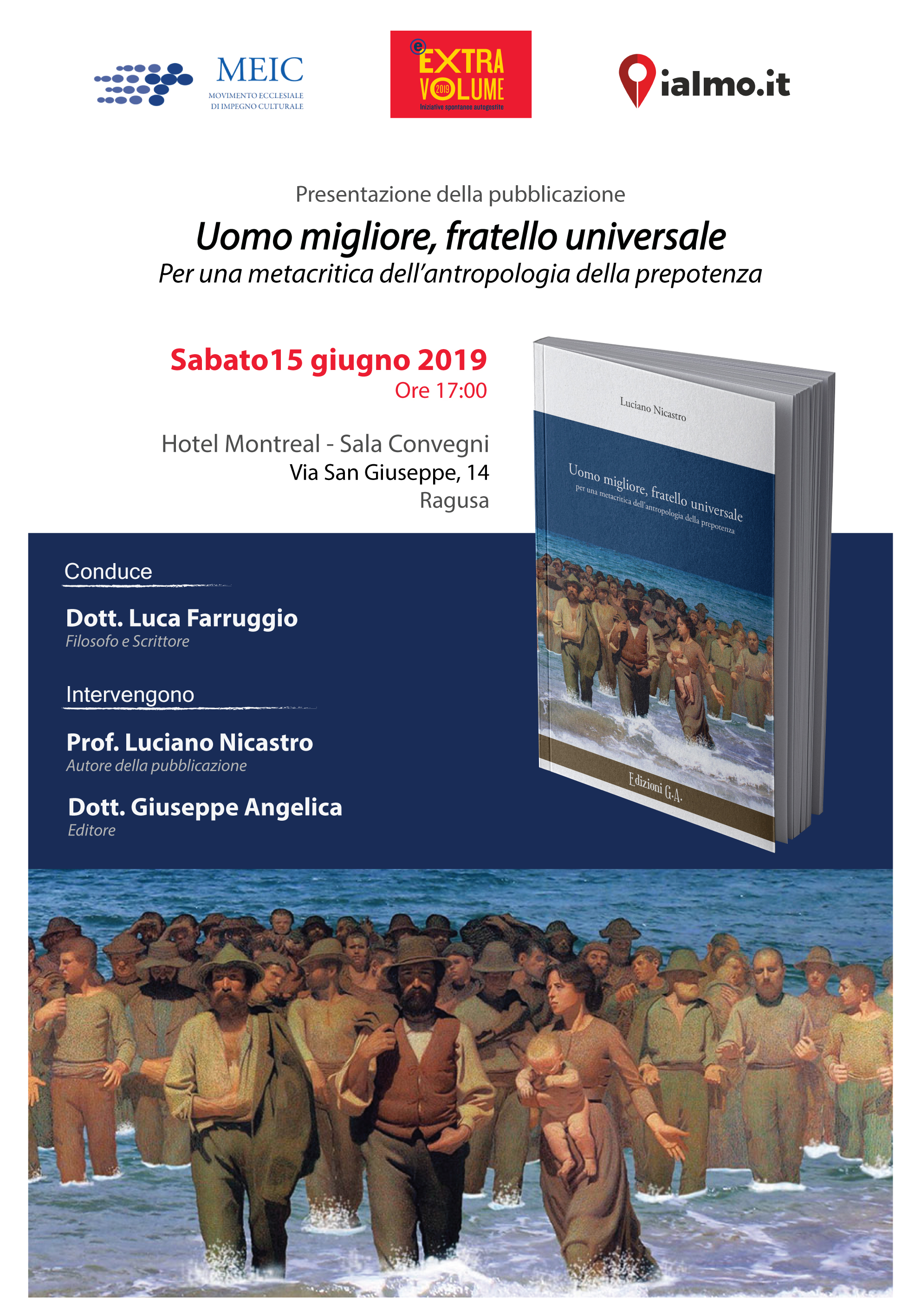 L’opera, edita da Edizioni G.A. di Giuseppe Angelica, sarà presentata sabato a Ragusa, nell’ambito della sezione Extra Volume della rassegna “A tutto volume”, alle ore 17 all’hotel Montreal. All’incontro, oltre all’autore e all’editore, prenderà parte il dr. Luca Farruggio, filosofo e scrittore. “Uomo migliore, fratello universale” ha l’ambizione di indicare una via, di illustrare un percorso convincente e sperimentale per una strategia di ricostruzione effettiva e relazionale della Politica come Ars Boni nella città dell’Uomo e della Pace. E’ un saggio che al populismo settario, violento e divisivo, contrappone la via della rivoluzione non violenta, una direzione “laica” e autenticamente spirituale, per costruire un mondo nuovo sul radicamento della civiltà umana e cristiana.