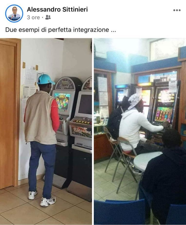 Continua: “Desumere da un semplice post dal carattere chiaramente sarcastico tutte le conclusioni a cui sono giunti i due “Marii” nel loro comunicato stampa, evidenzia l’assoluta mala fede che ha inspirato questa loro infelice uscita, ma stavolta hanno sbagliato bersaglio perché è mia intenzione andare fino in fondo in questa vicenda. Colgo, inoltre, l’occasione per chiarire che il post in questione, raffigurante due extracomunitari intenti a giocare alle slot machine e con dicitura “due esempi di perfetta integrazione”, non aveva alcuna finalità razzista o discriminatoria, ma voleva evidenziare, in tono leggero e sarcastico, che i soggetti rappresentati si sono perfettamente integrati con la ludopatia dilagante anche tra gli italiani”.