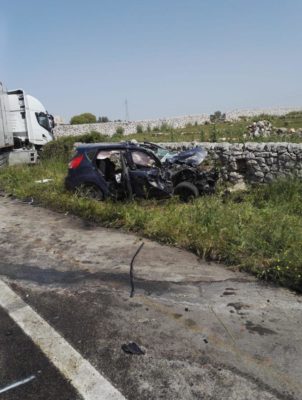 La Ford Fiesta sulla quale viaggiava, per cause al vaglio della Polizia Provinciale, è finita contro l'autoarticolato e poi ha terminato la sua corsa fuori strada