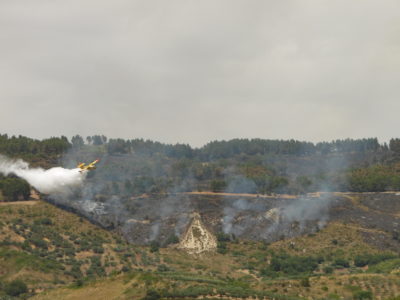Intorno alle 22.00 di venerdì 12 luglio alcuni abitanti, non soltanto di Burgio ma anche delle vicine Villafranca e Lucca Sicula, hanno notato un bagliore di fuoco proveniente dalla contrada boschiva chiamata “Pizzicu finu”. Nell’arco di poche ore, nella notte, si è sviluppato un incendio di vaste proporzioni che ha tenuto impegnate le squadre dell’Antincendio boschivo (AIB) supportate dall’intervento di due canadair e di un elicottero. Più volte tale incendio è stato dichiarato sotto controllo e poi domato, ma in realtà non è stato così. Quando sembrava che l’azione dell’uomo fosse riuscita ad avere la meglio sulla forza distruttrice delle fiamme, alcuni focolai sparsi si facevano strada aiutati dal vento che, letteralmente, dava loro “da mangiare”. Ieri sera tutti pensavano che le fiamme si fossero spente, invece stamattina delle colonne di fumo e il rumore dei canadair e dell’elicottero hanno reso chiaro che ancora non era finita. Per ben due giorni e mezzo gli uomini della forestale hanno combattuto con ogni mezzo contro la forza della natura e contro le conseguenze della stupidità umana (l’incendio è stato dichiarato di natura dolosa).