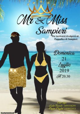 Gli eventi del weekend termineranno con il concorso Mr e Miss Sampieri, in cui i giovani concorrenti si esibiranno in passerella per ambire alla corona