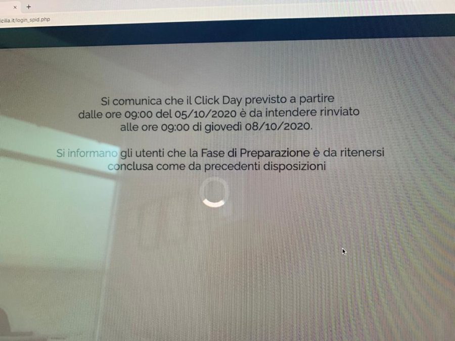 “Si comunica che il click day a causa di una problematica tecnica imputabile a Tim Spa è da intendersi rinviato alle ore 9 di giovedì 8 ottobre”. Una frase su una schermata bianca con la quale la Regione Siciliana ha informato tutti coloro che avrebbero dovuto inoltrare la richiesta.