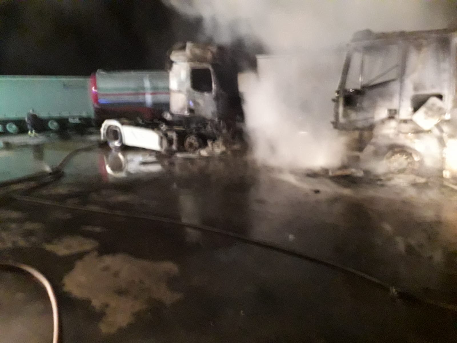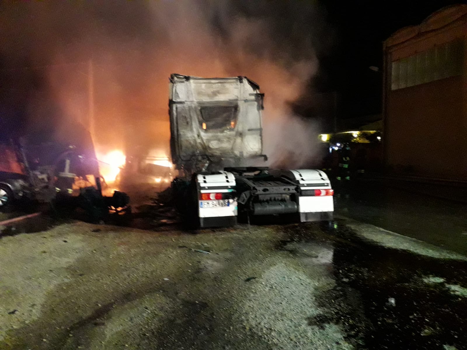Fiamme sulla S.P. 7 Comiso-Chiaramonte, nel piazzale di una officina dove bruciavano alcuni automezzi.