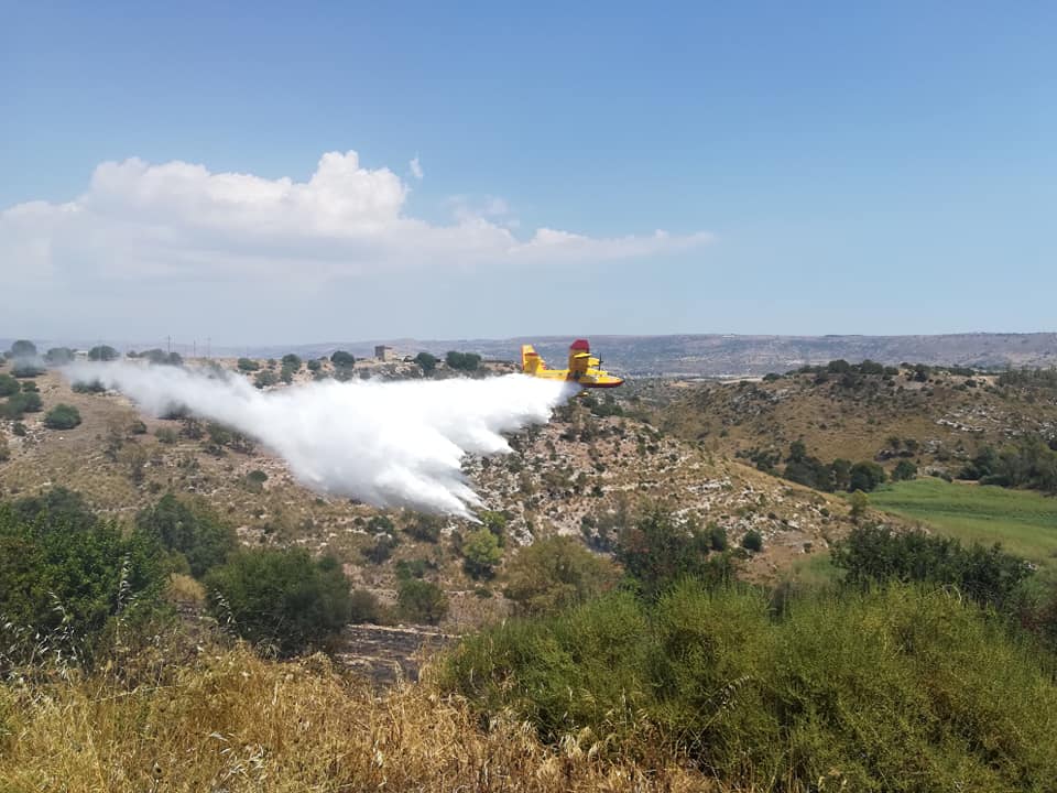 Fiamme nella Valle dell’Ippari: lo spettacolo dei canadair in azione
