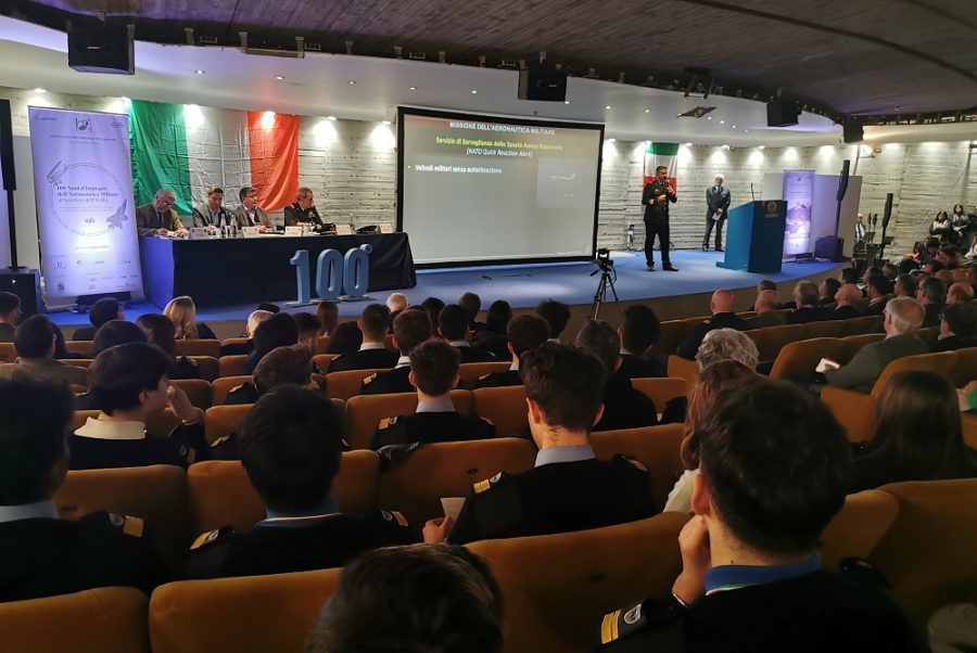 Il gen. Giulio Mainini, Presidente Nazionale dell’A.A.A., ha portato il saluto del gen. Luca Goretti, Capo di Stato Maggiore dell’Aeronautica, ed ha invitato tutti i presenti, soprattutto gli studenti, a partecipare attivamente ai festeggiamenti del centenario dell’A.M. sia per conoscerla meglio ma anche per manifestare la propria vicinanza all’Arma Azzurra. Il dott. Giuseppe Ardica, giornalista RAI e moderatore, ha introdotto i temi del convegno e presentato i relatori. Il Col. Daniele Donati, Comandante del 37° Stormo, con “La sicurezza dei cieli italiani ed alleati”, ha trattato il complesso ed affascinante sistema della difesa aerea nazionale, sia sotto il profilo organizzativo che operativo. Ha illustrando basi aeree, mezzi, sistemi radar che uomini e donne dell’A.M. impiegano per svolgere il compito primario di sorveglianza quotidiana dello spazio aereo nazionale e NATO, prevenendone o impedendone la violazione, secondo il principio del “Non c’è democrazia senza sicurezza”, a cui si associano anche interventi a favore di velivoli civili e militari in difficoltà. Il Col. Emanuele Di Francesco, Comandante del 41° Stormo Antisom e dell’Aeroporto di Sigonella, ha descritto l’evoluzione storica ed operativa della base di Sigonella con “Dalla Guerra Fredda al proliferare delle crisi: il ruolo di Sigonella per la sicurezza del Mediterraneo”. Sede di reparti di varie forze armate nazionali, europee ed internazionali, svolge un ruolo strategico a salvaguardia degli interessi nazionali, attraverso attività di vigilanza antisommergibile, pattugliamento marittimo, rilevamento dei flussi migratori e del traffico illecito di persone, nonché di ricerca e soccorso in mare. L’ing. Simone Massaro – fondatore di “Free Mind Foundry”, hub di cooperazione internazionale, che collabora anche con l’A.M. – ha, con legittimo orgoglio, presentato il più avanzato campus tecnologico posto al centro del Mediterraneo condividendo con i presenti le esperienze e le eccellenze di una struttura che da Acireale (CT) concepisce e distribuisce ad enti ed aziende, in Italia e nel mondo, programmi di gestione e controllo delle infrastrutture critiche ed in particolare dell’energia, delle telecomunicazioni, dei trasporti, della bio-medicina e della difesa. Ha concluso il convegno la tavola rotonda “Quella drammatica notte a Sigonella”, moderata dal Prof. Gregory Alegi (LUISS), sugli avvenimenti del 10 ottobre 1985. Alla rievocazione, documentata, del dirottamento non programmato della nave da crociera italiana “Achille Lauro” da parte di terroristi palestinesi, del laureando Emanuele Filippone, è seguita la testimonianza del gen. Fantuzzi, all’epoca capitano pilota di intercettori F 104 dell’A.M. rischierati a Sigonella, direttamente coinvolto nelle attività di sorveglianza dei cieli nell’area siciliana e sul Mediterraneo. La laureanda Ashley Reynolds ha riportato la stessa esperienza operativa da parte americana intervistando, nella sua tesi, uno dei piloti degli F 14 americani che intercettarono il Boeing della Egyptair, con a bordo i terroristi, e lo costrinsero ad atterrare a Sigonella. Ne è emerso un