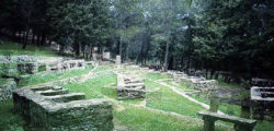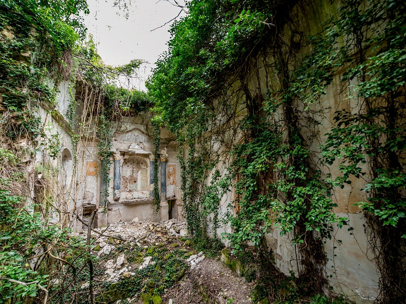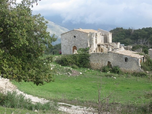 Se il suddetto santuario si scopre all’improvviso al centro di una spianata, le rovine dell’abbazia di Santa Maria di Adriano sembra che, quasi quasi, giochino a nascondino. Ciò che resta dell’antico convento potrebbe non palesarsi all’occhio umano che, distrattamente, passa dal sentiero che lo delimita e non nota il fitto groviglio di vegetazione che lo avvolge e lo protegge. Soltanto un tabellone in legno, stante e massiccio come una sorta di buttafuori all’esterno di un locale, ne annuncia la presenza. Nel XII secolo re Guglielmo I, a caccia in questi boschi, aveva rischiato la vita e per sciogliere il voto fatto alla Vergine decise di fondare un’abbazia a Ella dedicata insediandovi una colonia di monaci, anche in questo caso, provenienti dalla Siria. La chiesa annessa venne ricostruita nel XVII secolo e quello che oramai si trova ancora in piedi sono dei lacerti di pareti e di volte tra i quali spicca l’altare. Tra i ruderi e la fitta vegetazione esso si erge vivo nei suoi colori, come se in questo minuscolo spazio il tempo si fosse fermato. Tutto il complesso di trova in un angolo di bosco quasi inaccessibile se non si conosce la zona o non si è accompagnati da guide esperte.