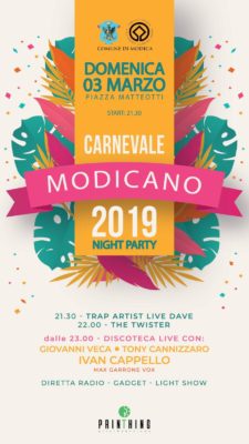 A Modica, il giovedi grasso è stato festeggiato ieri da oltre mille alunni delle scuole dell’infanzia che, grazie ad una iniziativa dell’Amministrazione Comunale, hanno pranzato con i piatti della tradizione di carnevale in maniera totalmente gratuita. Domenica, invece, dopo lo straordinario successo dello scorso anno che ha visto una marea di giovanissimi inondare il centro storico della città, a partire dalle 21,30, si ballerà prima con il live session di Dave, giovane cantante emergente, poi la serata continuerà con il warm-up The Twister e l’imperdibile Discoteca live con Tony Cannizzaro, Giovanni Veca e Ivan Cappello, accompagnati dalla voce di Max Garrone. Lunedì, infine, torna il Carnevale dei Centri Sociali, la festa dedicata a tutti i centri Anziani e Disabili del territorio modicano, al Centro Sociale di Frigintini con inizio alle ore 17:00. Il menù offerto dall’Amministrazione si basa sui prodotti tipici dell’enogastronomia modicana e della tradizione carnevalesca come focacce e chiacchiere. Ad allietare la serata la musica di Dino Migliorisi e la declamazione da parte degli anziani delle “miniminagghie” della tradizione orale modicana.