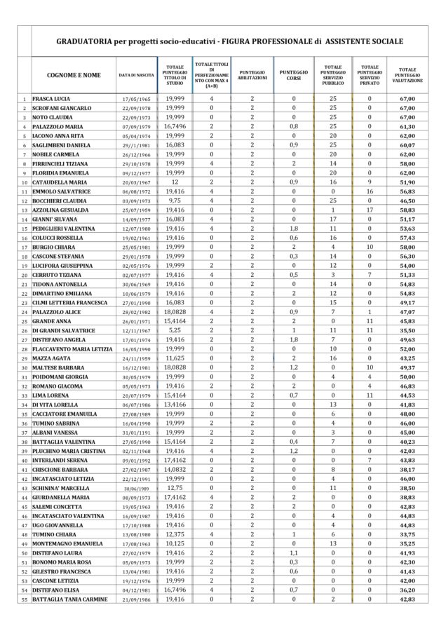 GRADUATORIA PER ASSISTENTI SOCIALI