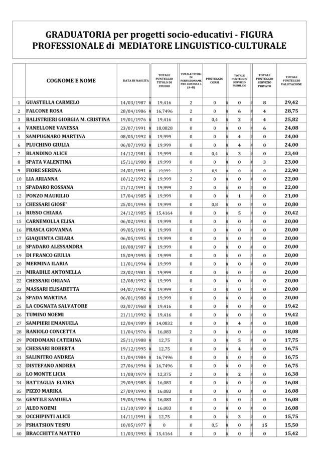 GRADUATORIA PER MEDIATORI LINGUISTICI