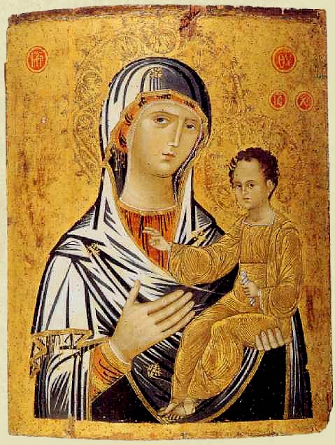 Fa parte del gruppo di “Icone Odigitrie”, dette così perché la Madonna indica con una mano Gesù, il quale di solito presenta un libro aperto sul quale è scritto “Io sono la via” (in greco “odòs”). Durante la Settimana Santa del 1992, l’arcivescovo di Catania, monsignor Luigi Bommarito, ricevette in confessione un fedele che lo invitò a prendere un pacco adagiato sul banco della chiesa e a riportarlo al suo posto. Un attimo dopo, il religioso si ritrovò completamente solo avvolto dal silenzio e dal gelo di una cattedrale ormai vuota in una fredda giornata di inizio primavera. Tolto l’involucro di fogli di giornale, il monsignore scoprì tre pezzi di tavola dipinta che, accostati, restituivano l’immagine di una Madonna. Nonostante non avesse idea di cosa si trattasse nello specifico e da dove potesse venire, si rese comunque conto che stava ammirando un oggetto rubato e di grande valore. Di concerto con la Questura di Catania, Bommarito cercò di risalire al luogo di origine del quadro, in modo da poterlo restituire al legittimo proprietario. Ma niente. L’ignoranza di notizie rendeva il mistero ancora più fitto fino a quando, parlando del caso con monsignor Alfonso Tortorici della diocesi di Agrigento, costui gli raccontò di un centro dell’agrigentino dove, molti anni addietro, si erano verificati dei furti nelle chiese: Burgio. Subito l’arcivescovo catanese scrisse una lettera al parroco del piccolo paese, don Giuseppe Marciante, informandolo del fatto e inviandogli anche una foto del quadro restituito. Grazie al confronto con la foto presente nell’articolo di un giornale dell’epoca, che fortunatamente si trovava nella locale stazione dei Carabinieri, si è scoperto che il quadro ritrovato in terra catanese altro non era che l’icona bizantina di cui la comunità burgitana aveva perso le tracce nel lontano 1964. La gioia fu immensa e incontenibile quando don Giuseppe, in occasione dei festeggiamenti in onore di Santa Rita da Cascia, informò la folla di fedeli che l’icona della Madonna di cui si stava perdendo la memoria miracolosamente era stata restituita.