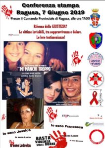A poche settimane dall’ultimo femminicidio, e a pochi giorni dalla fiaccolata in memoria di ogni donna vittima di violenza, l’associazione Libere Donne di Crotone e l’associazione Nazionale dei Carabinieri di Ragusa insieme, venerdì 7 giugno alle ore 16:30, nei locali del Comando Provinciale di Ragusa per presentare un progetto che verrà inaugurato durante il convegno che si terrà a fine settembre a Ragusa e che vedrà coinvolto anche il comando provinciale di Ragusa. Parteciperanno le mamme coraggio Vera Squatrito, presidente dell’associazione Io sono Giordana, mamma di Giordana uccisa dal suo fidanzato con 48 coltellate a soli 20anni, Giovanna Zizzo: mamma di Laura e Marika accoltellate dal proprio padre, mentre dormivano, e Caterina Villirillo, mamma di Giuseppe Parretta ucciso per futili motivi a 18 anni. Un intervento importante sarà fatto da Corrado Armeri, “Gran Maestro della Confraternita Cattolica Cristiana dei Cavalieri Templari Federiciani”. Vittime di ingiustizia e mamme coraggio nello stesso progetto, al quale collaboreranno il CIF di Roggiano Gravina e la neonata Associazione Codice Rosso.