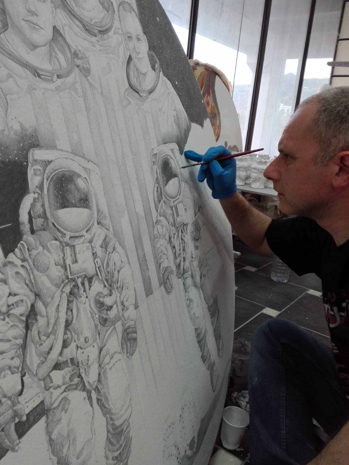 E il suo osare ha portato alla realizzazione di un tavolo in pietra lavica del diametro di oltre un metro, che raffigura e ricorda la missione Apollo 11, realizzato completamento a mano. Questo grande tavolo nero con i colori argentei ricorda proprio la faccia della luna e il disegno vuole essere un omaggio al 50 esimo anniversario dello sbarco sul satellite della terra. Giacomo ci ha raccontato che il tempo di realizzazione dallo schizzo, la smaltatura, all’esposizione ha impiegato circa 3 settimane, e che il tavolo ha subito due cotture al forno: la prima per fissare il disegno con una temperatura di oltre 900° e l’altro passaggio in forno per cristallizzare il numero 50, quest’ultimo realizzato tutto con un lustro oro. Il risultato è un opera di immensa bellezza e fascino. L’opera si trova esposta a Taormina, presso l’azienda nella quale Giacomo lavora.