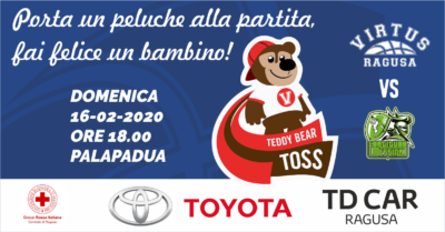 Cosa non si fa per regalare un sorriso ad un bambino? A volte basta davvero un piccolo gesto per fare qualcosa di buono o, come in questo caso, basta un piccolo peluche! Domenica prossima la TD Car Virtus Ragusa, in occasione della partita casalinga della contro la Fortitudo Messina, ha deciso di aderire nuovamente al Teddy Bear Toss, l’iniziativa benefica promossa dalla Fip (Federazione Italiana Pallacanestro). È un’idea nata in America qualche anno fa e, adesso, promossa anche in Italia da molte leghe del campionato di basket, ricevendo l’adesione di numerosissime società. L’iniziativa interessa i primi minuti della partita e consiste nel lancio di peluches dalla tribuna subito dopo il primo canestro realizzato dalla squadra casalinga o ospite, da 2 o 3 punti. Si tratta davvero di un piccolo gesto che renderà felici i bambini meno fortunati e gli regalerà dei momenti di gioia e di giochi. L’iniziativa è supportata dal Comitato di Ragusa della Croce Rossa Italiana.