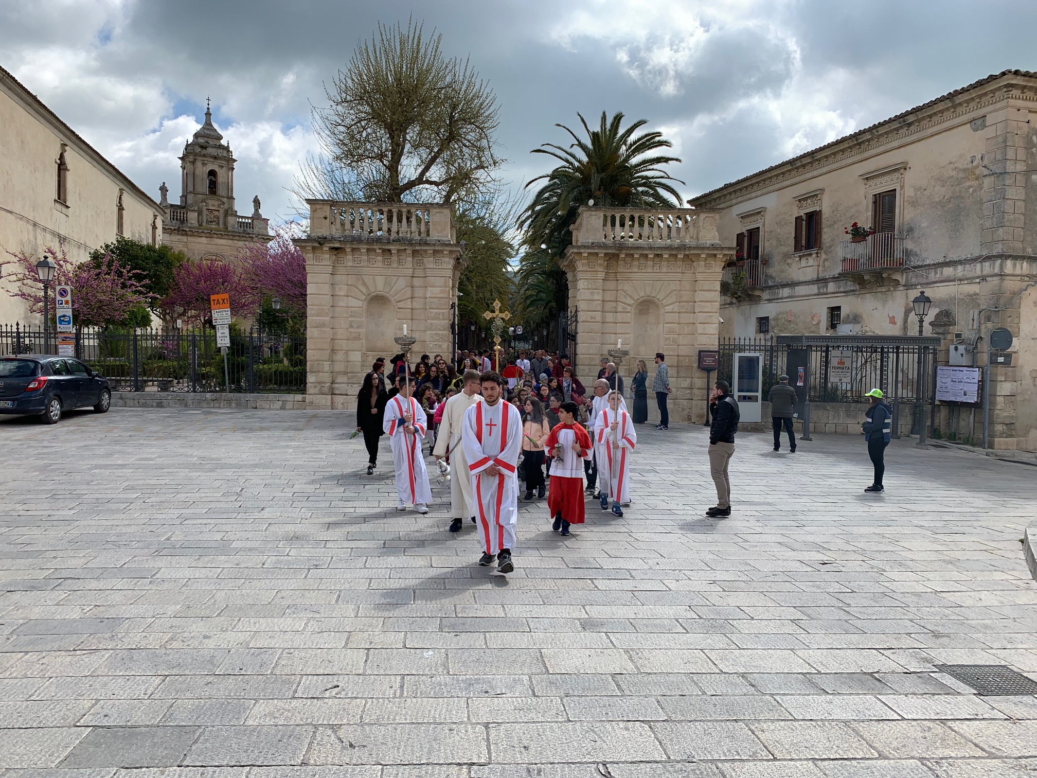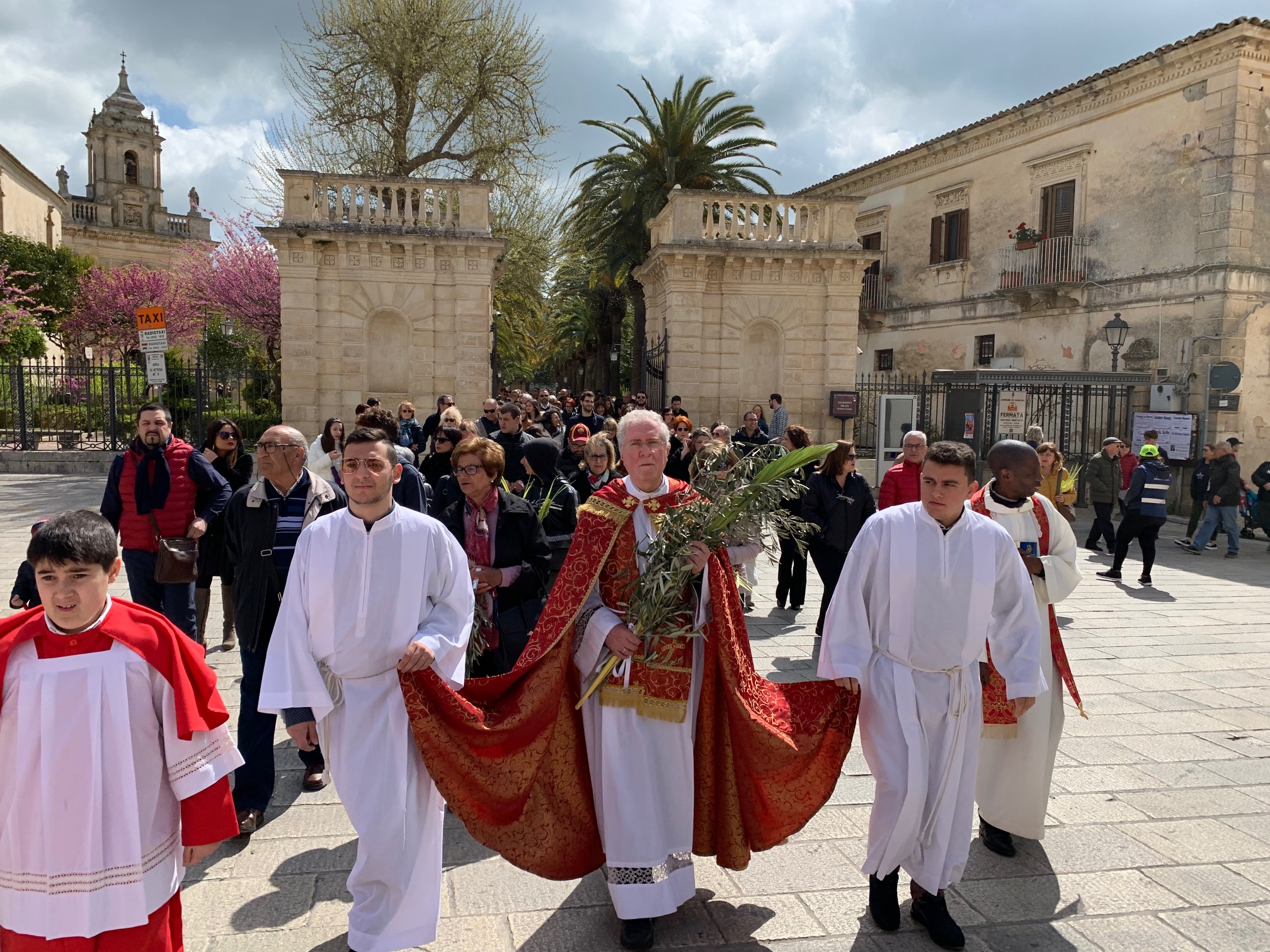 In mattinata, ad Ibla, la benedizione delle Palme, con il parroco della chiesa Madre di San Giorgio, don Pietro Floridia, nella splendida cornice del sagrato antistante la chiesa di San Giacomo apostolo, all’interno del Giardino ibleo. Una cerimonia molto partecipata quella tenutasi con la presenza dei gruppi scout Fse di Ragusa 3. Subito dopo la benedizione, i fedeli, in processione, hanno proceduto dal Giardino ibleo per le vie principali del quartiere barocco, sino ad arrivare al Duomo di San Giorgio. Qui si è tenuta la celebrazione eucaristica caratterizzata dal ricordo del trionfale ingresso di Gesù a Gerusalemme, osannato dalla folla che lo salutava agitando rami di palma.
