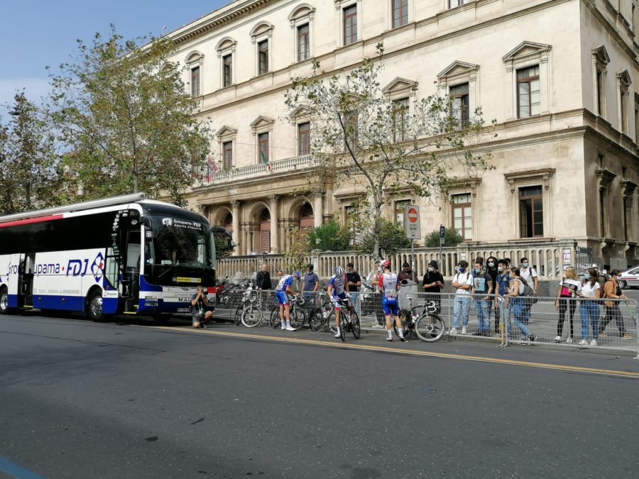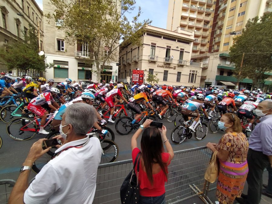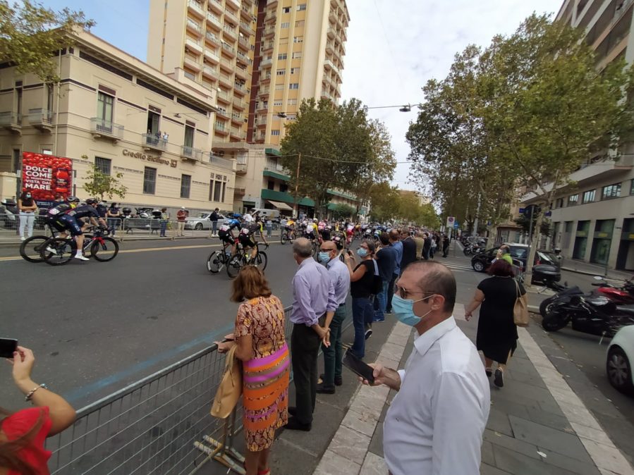 Al passaggio dei ciclisti, che ancora formavano un unico blocco compatto, per le vie catanesi, c’erano tante persone a salutarli e incitarli. Un momento veloce, ma tanto atteso dai cittadini che numerosi sono accorsi lungo il percorso.