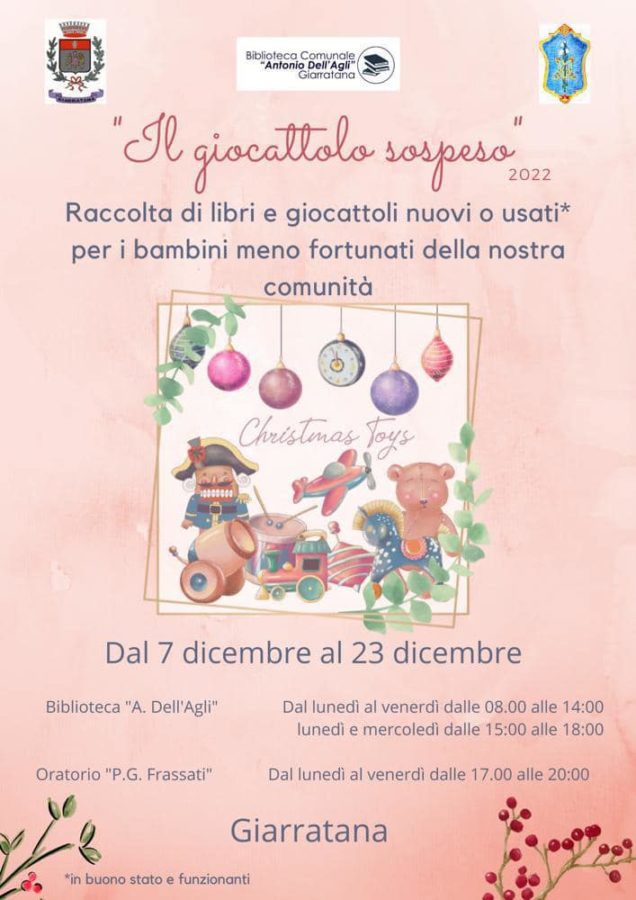 (5 dicembre 2022 – Raccolta di giocattoli e libri per i bambini meno fortunati della comunità: l’iniziativa del Comune di Giarratana)