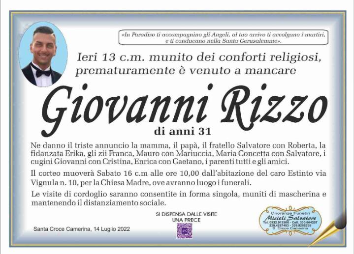 (14 luglio 2022 – Santa Croce Camerina – Sabato 16 luglio l’ultimo saluto a Giovanni Rizzo)