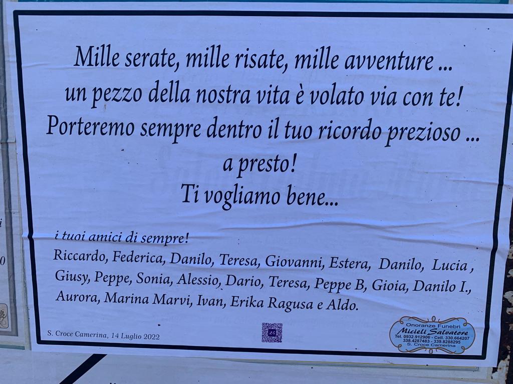 (16 luglio 2022 – Santa Croce Camerina si ferma per l’ultimo saluto a Giovanni Rizzo: negozi chiusi, strade vuote e lungo corteo di profondo dolore)