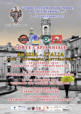 “Un bellissimo novembre, a Caltagirone…” – Festival delle arti e delle letterature” è la manifestazione che, su iniziativa di Eurasian Art Union, Maq (Movimento arte quantistica) e Il Garufi Edizioni – partner locale e l’associazione “Ghìran” – col patrocinio del Comune di Caltagirone, si svolgerà alla Corte Capitaniale dal 1° al 30 novembre. In programma mostre parallele di artisti provenienti dalle Repubbliche russe (che rappresentano il momento monografico dell’evento), di artisti Maq e di artisti siciliani, messi in rapporto e paragone con la storia artistica del territorio e con le vicine esperienze nel mondo intero. Previste esposizioni di quadri, sculture, ceramiche, fotografie, video e poesie che, grazie anche ad alcune pubblicazioni, faranno dell’evento, come evidenziano i promotori, “qualcosa di più di una semplice mostra”. L’intento degli organizzatori è quello di offrire una panoramica delle più recenti espressioni estetiche internazionali, anche secondo le metodologie della critica quantistica, che privilegia lo studio delle “energie profonde” che danno avvio all’atto creativo, combinandosi in gusti, valori e strutture sociali..