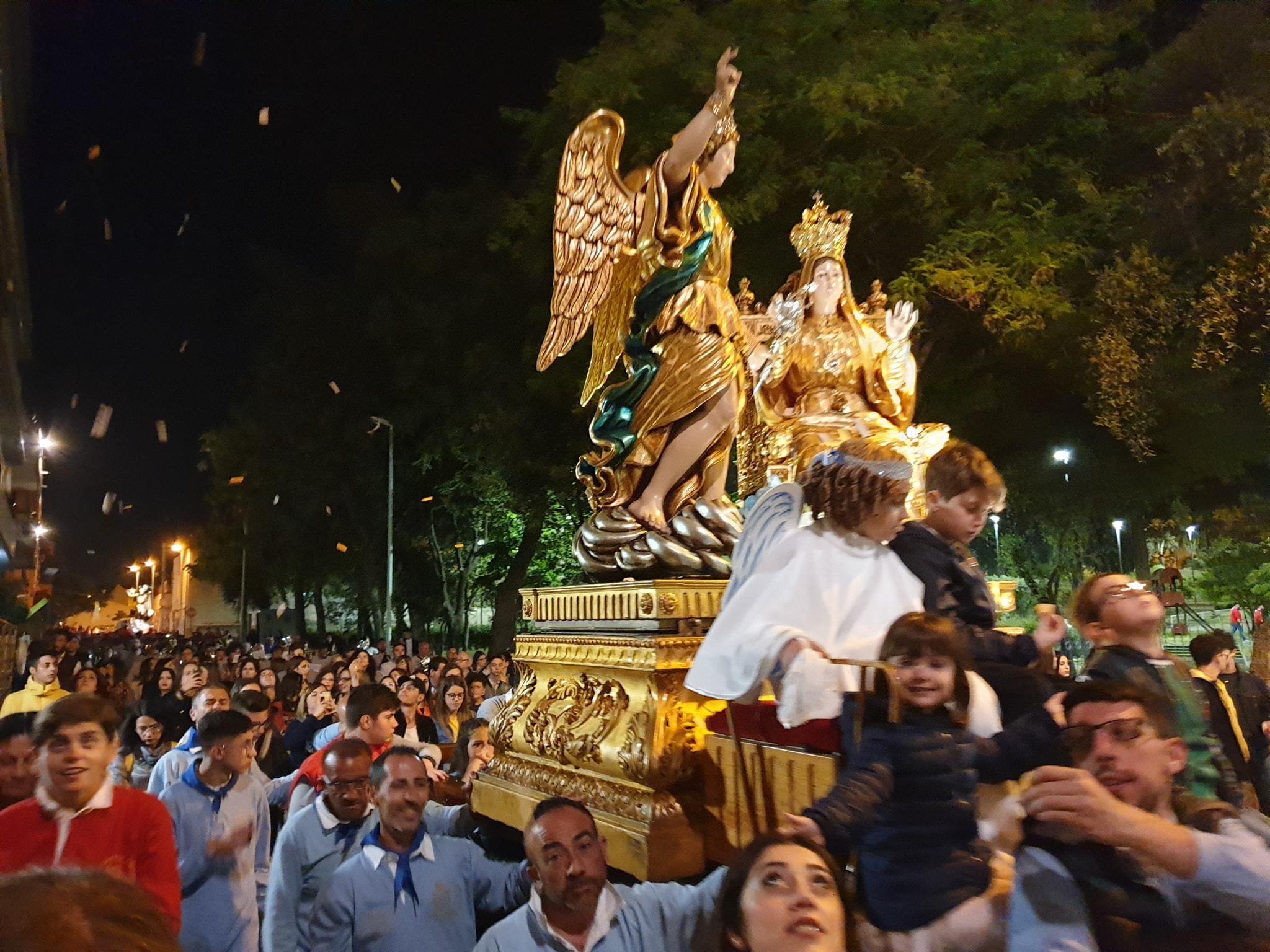 Con una settimana di ritardo, anche Comiso ha avuto la sua Pasqua di Resurrezione. Le statue della Madonna Annunziata e poi del Cristo Risorto, dopo essere uscite dal portone centrale della basilica di Maria Santissima Annunziata, tra un tripudio di colori, sono state salutate dalla folla osannante. E già da subito, dopo essere stata posizionata l’una di fronte all’altra, dopo l’antifona intonata dagli angioletti posti ai piedi della Madonna e di Gesù, hanno dato vita, venendosi incontro, alla “paci” iniziale della lunga giornata. La prima di una lunga serie che ha scadenzato l’interminabile processione, con le bande musicali, che ha toccato buona parte del centro abitato casmeneo. L’ultima “paci”, anzi le ultime due, quelle denominate dei gonfaloni e delle confraternite, prima del rientro in basilica, in piazza Fonte Diana. Sul sagrato della basilica, dopo mezzanotte, suggestivo ed emozionante lo spettacolo coreografico di videomapping, curato da Elisa Nieli mapping, con la danza del fuoco, realizzato dallo Studiolab di Biagio Cosentino. Dopo il rientro, l’ultima “paci”, la tredicesima, della lunga ed estenuante giornata che però ha regalato una grossa soddisfazione ai devoti e ai fedeli e a tutti coloro che si sono spesi per questi fantastici momenti.