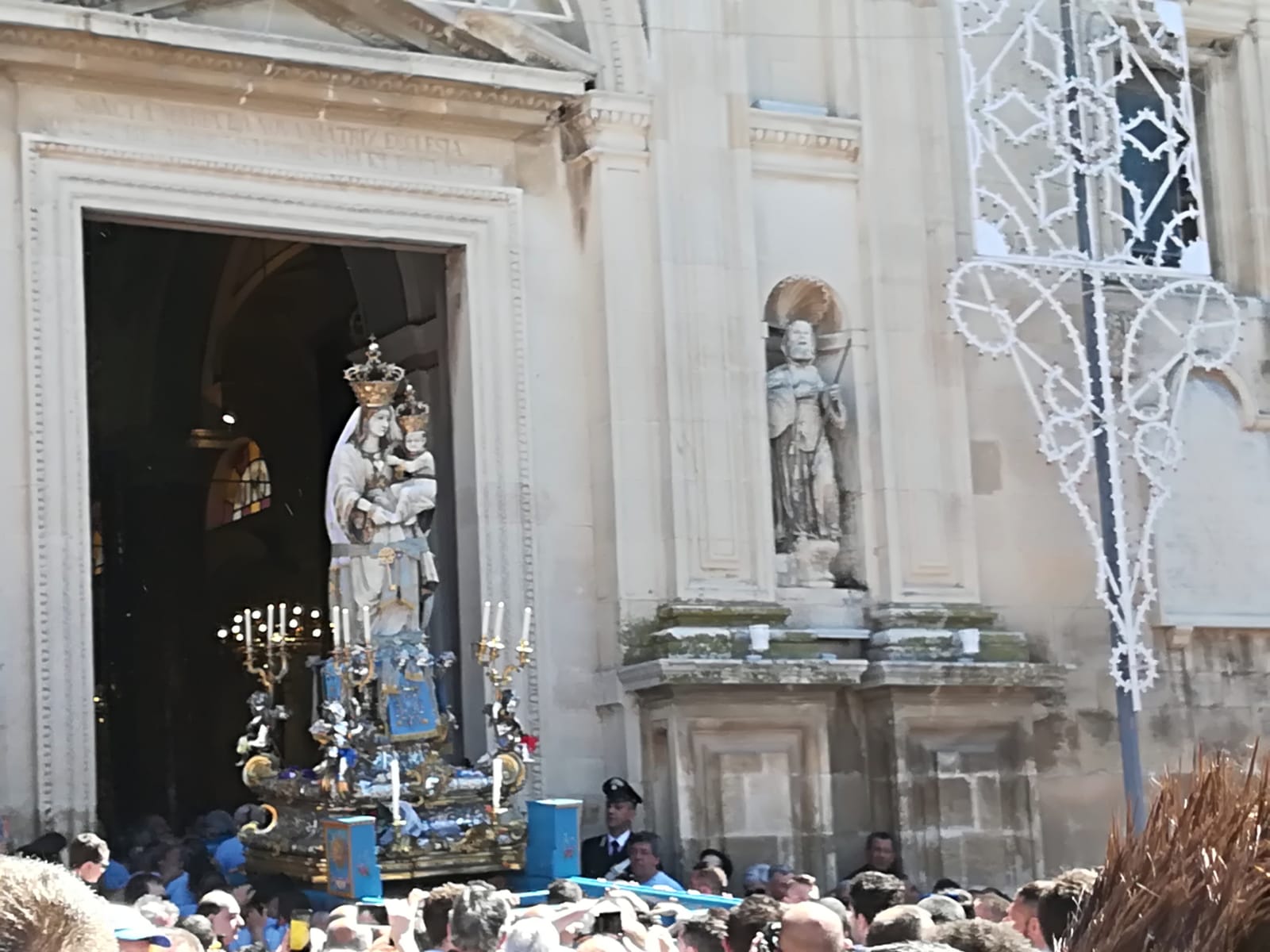 Alternando tratti di corsa ad altri con passo comunque spedito, il simulacro ha raggiunto piazza Duomo nel giro di un’ora, alle undici in punto. C’è stato il tempo, però, e anche in questo caso la tradizione è stata rispettata, per una sosta, all’ingresso di Chiaramonte, in cui i portatori e alcuni fedeli si sono rifocillati recuperando le energie grazie ad alcuni limoni mentre altri intonavano il “Tota pulchra”. Poi il panorama del paesaggio si è modificato e alla campagna chiaramontana, caratterizzante il primo tratto della processione, sono subentrate le viuzze caratteristiche della via Gulfi con la lunga processione insinuatasi nel cuore del centro montano alla stregua di un lungo serpentone. Un’emozione sempre nuova, per i giovani e gli anziani che hanno dato vita ai momenti distintivi della salita fino all’ingresso trionfale in piazza Duomo dove, al momento dell’arrivo del simulacro, la folla presente ha fatto partire un lungo applauso. Quindi, i portatori, noncuranti della fatica, hanno fatto sì che la tradizione venisse ulteriormente rispettata con le numerose entrate e uscite del simulacro dalla navata centrale dell’edificio di culto. E ad ogni uscita il convinto applauso dei fedeli in una piazza stracolma a volere ringraziare l’attenzione che la Madonna di Gulfi riserva, ogni anno, alla città. Presente alla manifestazione anche il sindaco Sebastiano Gurrieri e i componenti della squadra assessoriale. Le celebrazioni sono proseguite alle 14,30 con il tradizionale “cuncursu” per le vie cittadine, vale a dire la processione pomeridiana. Alle 17,45 un altro momento atteso con il simulacro del Patrono San Vito portato in Chiesa madre. Alle 19, la celebrazione eucaristica. Il novenario è in programma dal 29 aprile al 7 maggio. Tutti i giorni le celebrazioni eucaristiche sono in programma alle 9 e alle 11. Alle 18,15 la recita del Rosario meditato animato dai postulanti Ofm e litanie cantate. Alle 19 la celebrazione eucaristica presieduta dal predicatore, padre Carlo Moro. Esposizione del Santissimo sacramento e a seguire Vespri solenni e benedizione eucaristica. Dalle 22 alle 24 la preghiera silenziosa davanti alla Madonna. Domani, il programma dei solenni festeggiamenti prosegue con la cosiddetta “Giornata dei trappitari”. La santa messa delle 11 sarà presieduta da don Filippo Bella. Alle 20,30 ci sarà la degustazione dell’olio a cura dei trappitari. La giornata di martedì 30 aprile, invece, sarà dedicata ai mugnai e ai panificatori. La messa delle 11 sarà presieduta da don Innocenzo Mascali. Alle 20,30, in chiesa Madre, l’inaugurazione della mostra fotografica presso l’altare di Santa Lucia. Alle 20,45 la degustazione del pane offerta dai mugnai e panificatori.