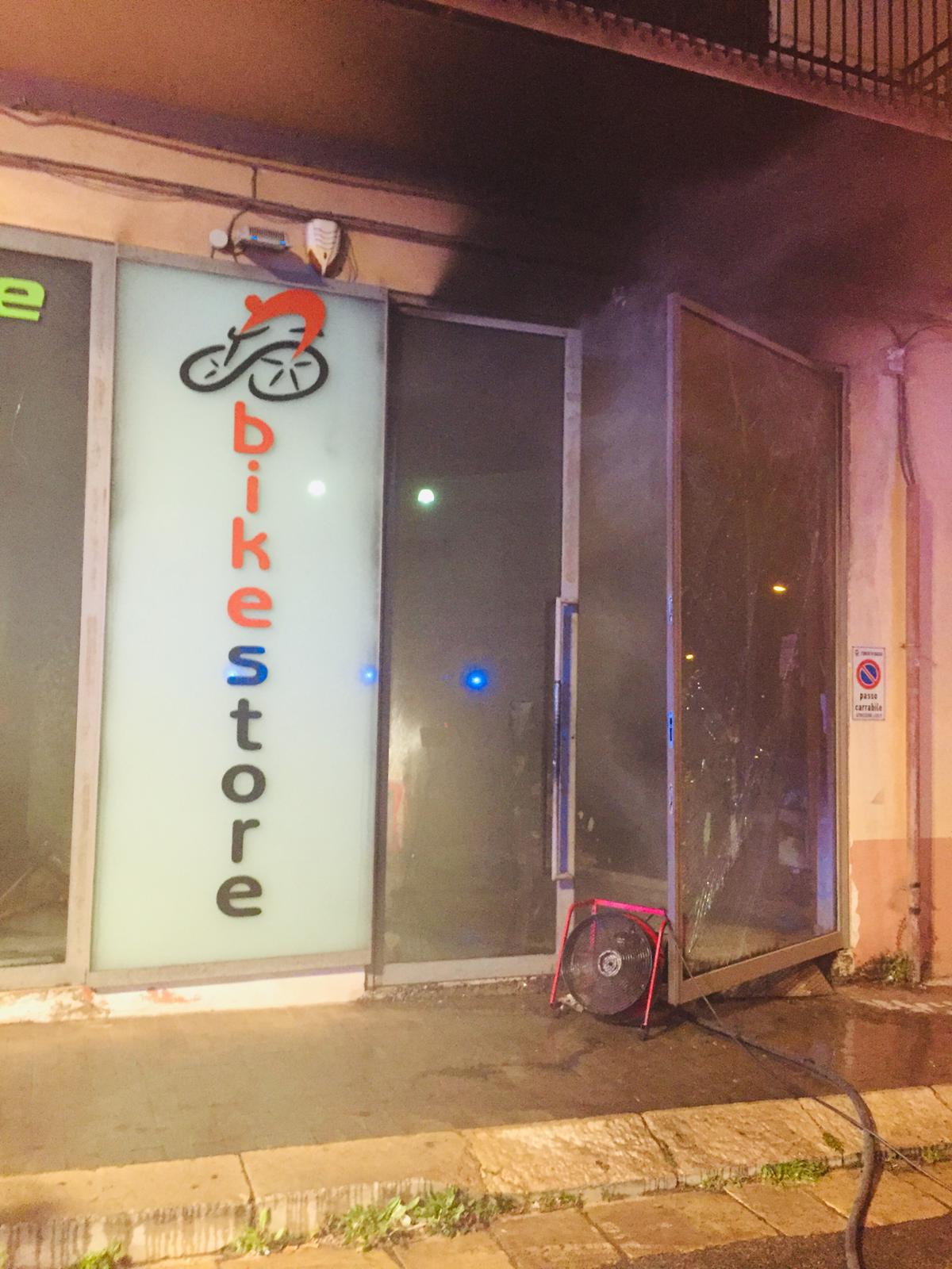 A fuoco un negozio di biciclette nel centralissimo corso Vittorio Veneto. Ustionato il titolare, accorso sul posto quando è scattato l'allarme