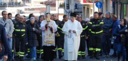 Un’accoglienza straordinaria, davvero eccezionale, per il reliquiario della Madonna delle Lacrime proveniente dal santuario di Siracusa. Ieri pomeriggio la Ragusa dei devoti alla Vergine e dei fedeli si è mobilitata. C’erano anche i rappresentanti delle istituzioni, il questore Salvatore La Rosa, il vicesindaco Giovanna Licitra, il comandante provinciale dell’Arma, Federico Reginato, e, naturalmente, il comandante provinciale dei Vigili del fuoco, Aldo Comella, che ha fatto gli onori di casa. Un momento molto particolare che si è tenuto all’interno della caserma provinciale dei Vigili del fuoco, con tutti i vigili schierati in parata, visto che il sito ricade nella parrocchia che ospita il reliquiario, quella del Sacro Cuore. E’ stato don Enzo Candido, sacerdote del santuario, a portare con sé il reliquiario che contiene le lacrime di Maria. Ad occuparsi dell’accoglienza il parroco del Sacro Cuore, don Marco Diara, che ha poi presieduto un momento di preghiera proprio all’interno del comando dei Vigili. E’ arrivato, inoltre, l’omaggio floreale da parte dei bambini.
