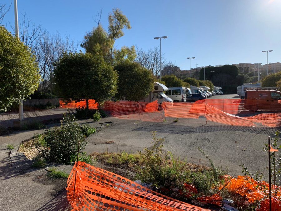 A causa della presenza di queste spaccature e della possibilità di ulteriore cedimento, lo spazio adibito a parcheggio, sia di auto che di camper, è cinturato e off limits.
