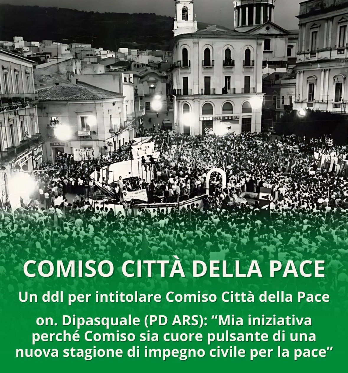 Un disegno di legge volto a conferire a Comiso il titolo di “Città della Pace” è stato presentato all’Assemblea Regionale Siciliana dal deputato del Partito Democratico Nello Dipasquale.