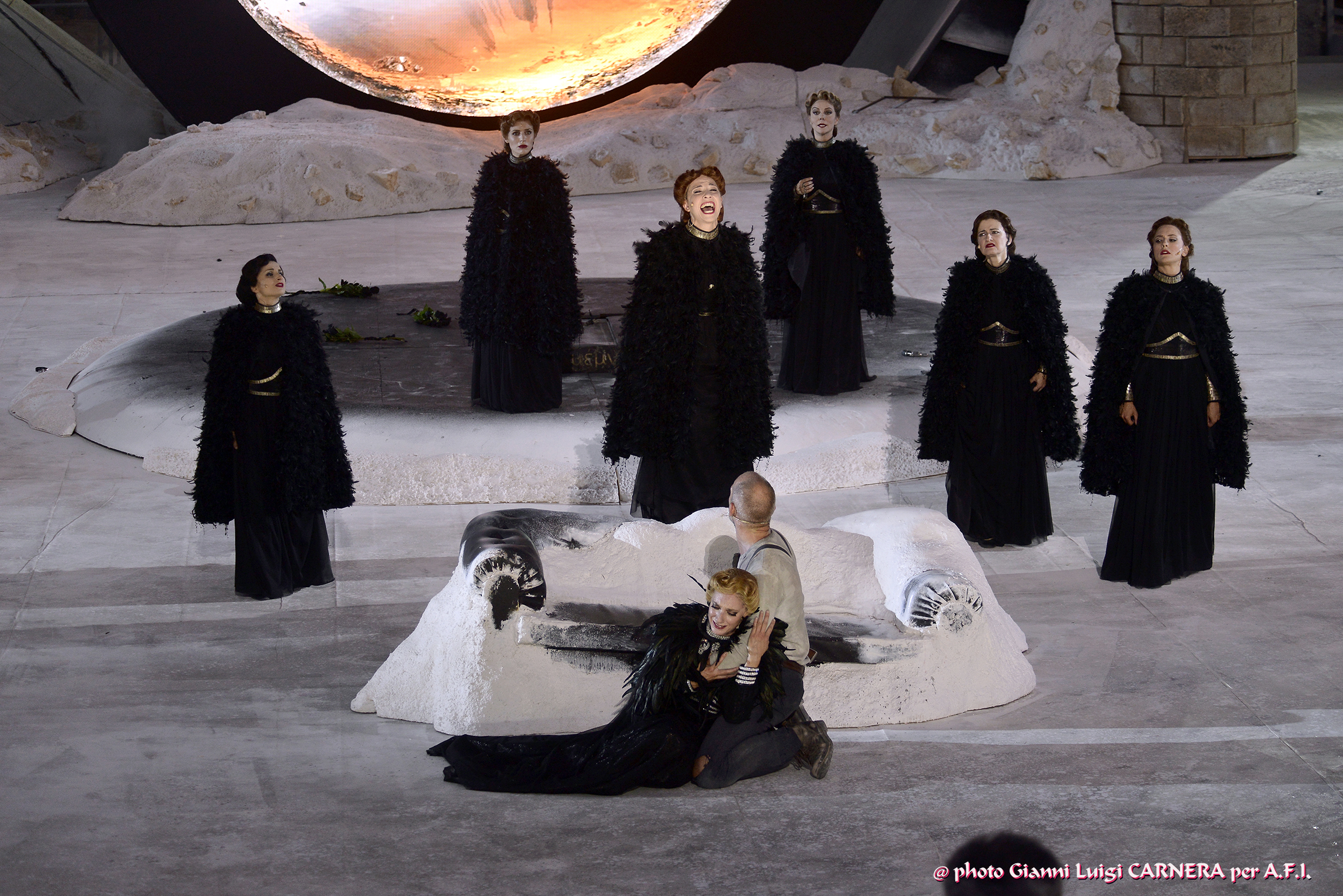 Lo spettacolo diretto da Davide Livermore ha conquistato il pubblico tornato a riempire i gradoni del Teatro che quest’anno potrà ospitare fino a un massimo di 3 mila persone. A seguire la messa in scena del testo di Eschilo anche Luciana Lamorgese, ministro dell’Interno, Marta Cartabia, ministro della Giustizia, Nello Musumeci, presidente della Regione Siciliana, l’ex presidente del Senato, Pietro Grasso, l’attrice Lella Costa e il celebre regista Robert Carsen che nel 2022 dirigerà a Siracusa Edipo Re di Sofocle. Ad accoglierli, il presidente della Fondazione Inda Francesco Italia, il consigliere delegato dell’Inda Marina Valensise e il sovrintendente Antonio Calbi.