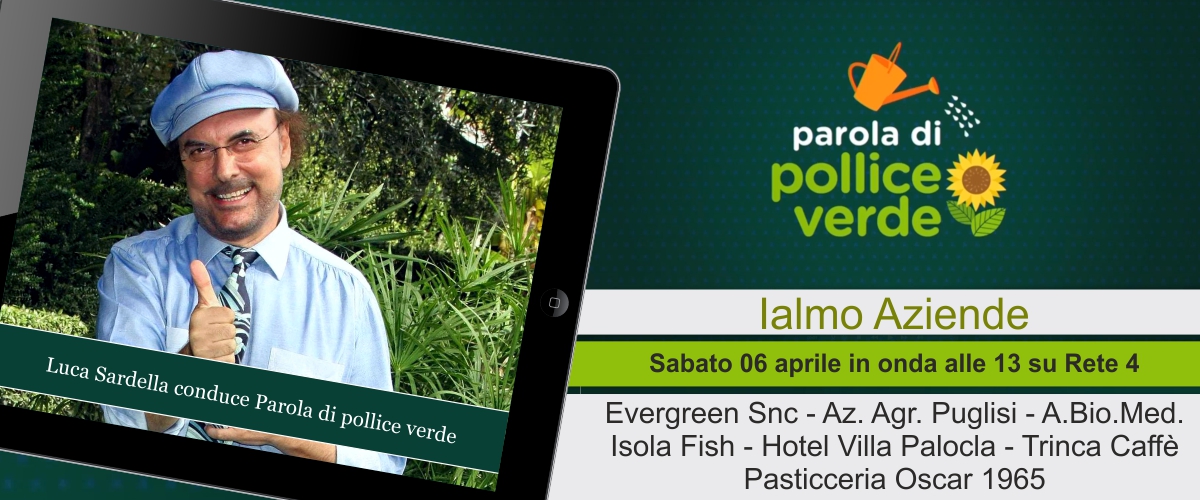 Sabato 6 aprile 2019 su Rete 4 a partire dalle ore 13, è andata in onda la puntata con i servizi dedicati alle aziende Evergreen snc, Az. Agr. Puglisi, A.Bio.Med. Isola Fish, Villa Palocla, Pasticceria Oscar, Trinca Caffè selezionate da Edizioni G.A., concessionaria per la Sicilia del Format Mediaset, Parola di Pollice Verde.