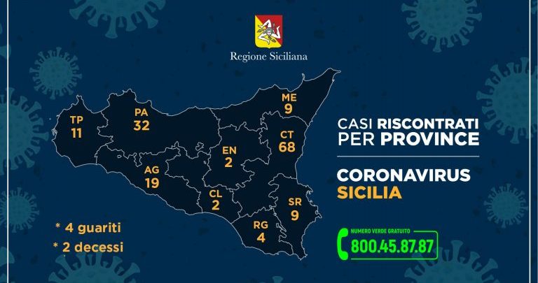 Continua »Questi i casi riscontrati nelle varie province dell'Isola, aggiornati alle ore 12 di oggi, così come segnalati dalla Regione Siciliana…