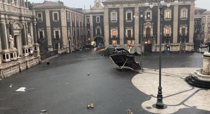 Un fortissimo “tornado” seguito da pioggia e grandine, si è abbattuto oggi, prima delle 15,30, nel centro storico di Catania