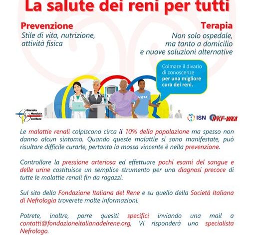 In occasione della Giornata Mondiale del Rene, l'Asp di Ragusa promuove delle iniziative per implementare le conoscenze sulla malattie renali