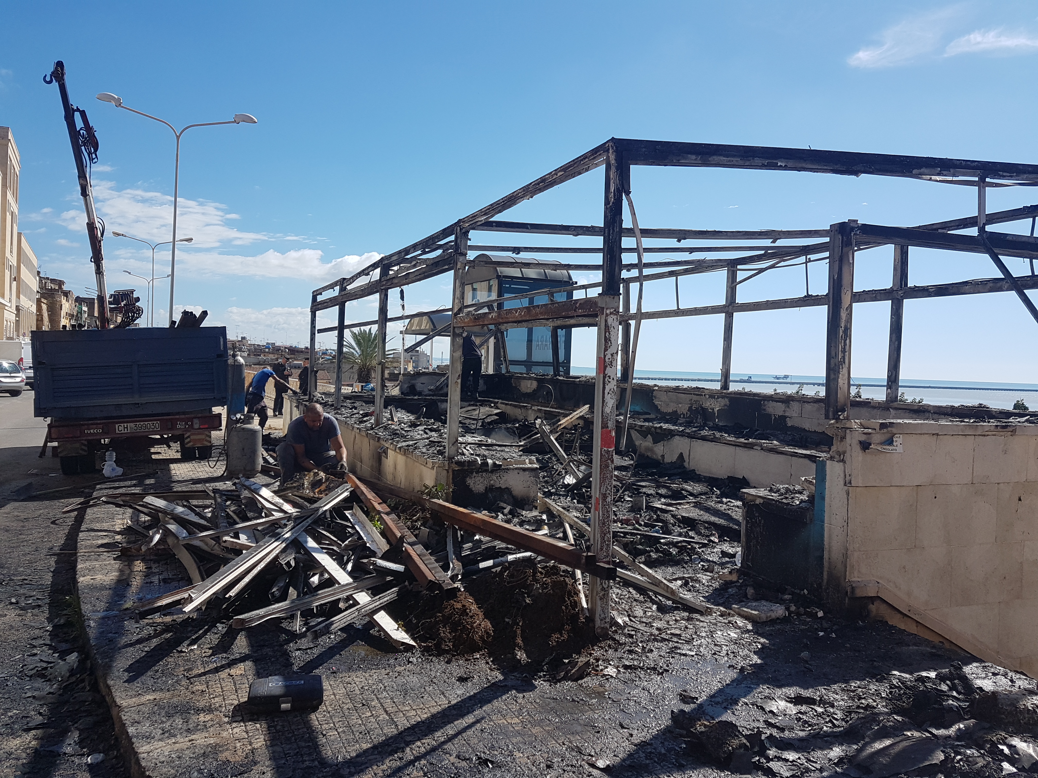 Sono stati loro, i Vigili del Fuoco, accorsi immediatamente nei due luoghi dell’incendio, i primi testimoni della devastazione. Il primo locale a essere colpito dal fuoco è stato il Belvedere. Ieri era stato il primo giorno di apertura per i nuovi gestori, dopo un lungo periodo di chiusura dello storico Bar, situato di fronte al Municipio. Il proprietario, Vito Fraglica, trova a stento la forza di parlare: “La mia attività è stata distrutta non appena avviata. Non so chi possa avere compiuto una simile azione. Non abbiamo avuto richieste di pizzo o intimidazioni”.